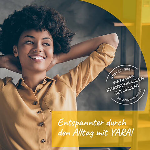 Yara - Entspannung erleben ist ein digitaler Präventionskurs den du mit unserem gesamten Gesundheitsprogramm kombinieren kannst. Und das Beste daran ist, dass die Krankenkasse dieses Angebot fördert.